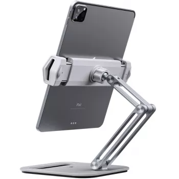 Adjustable Long Arm Aluminum iPad and iPhone Stand with 360° Rotation